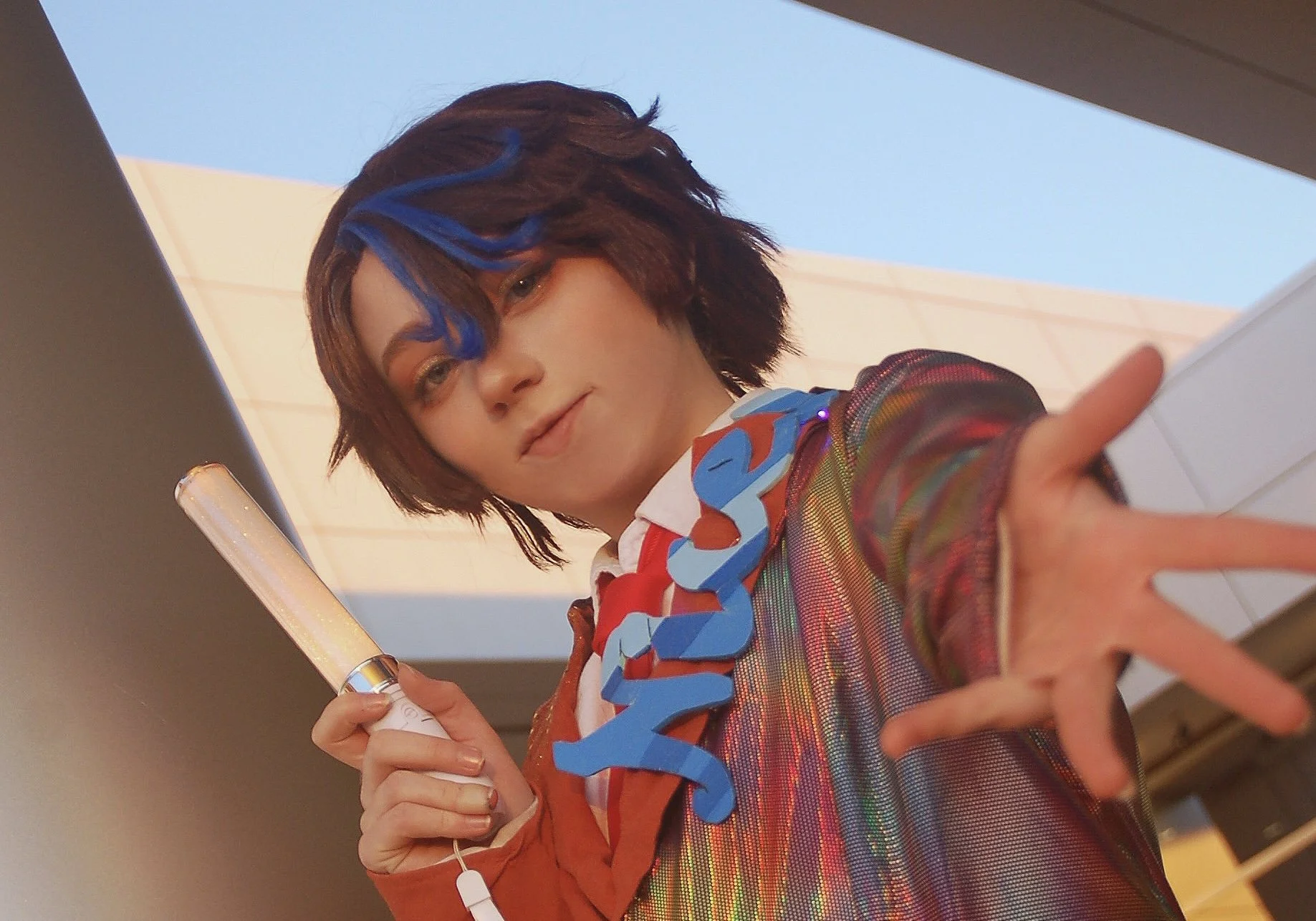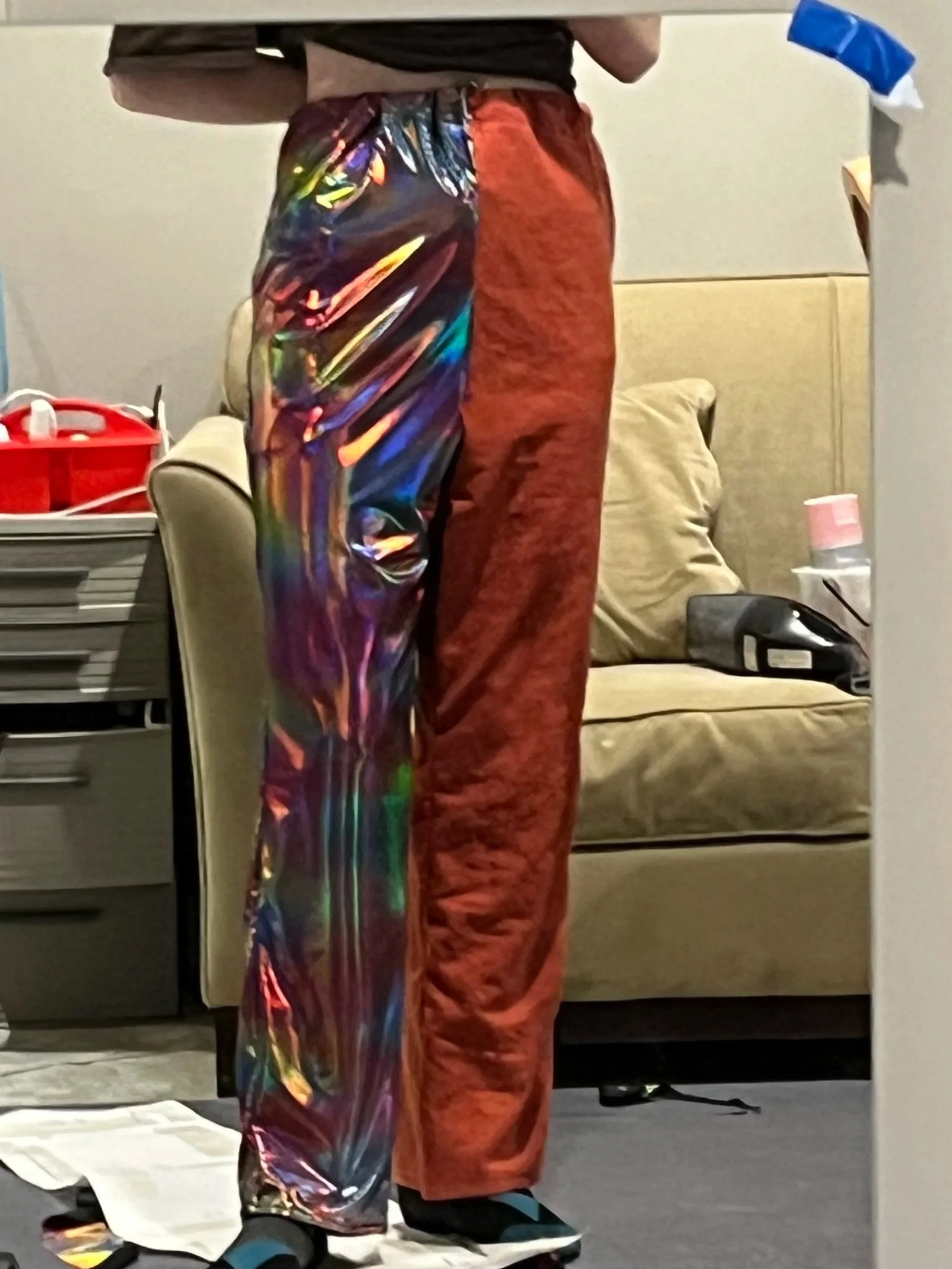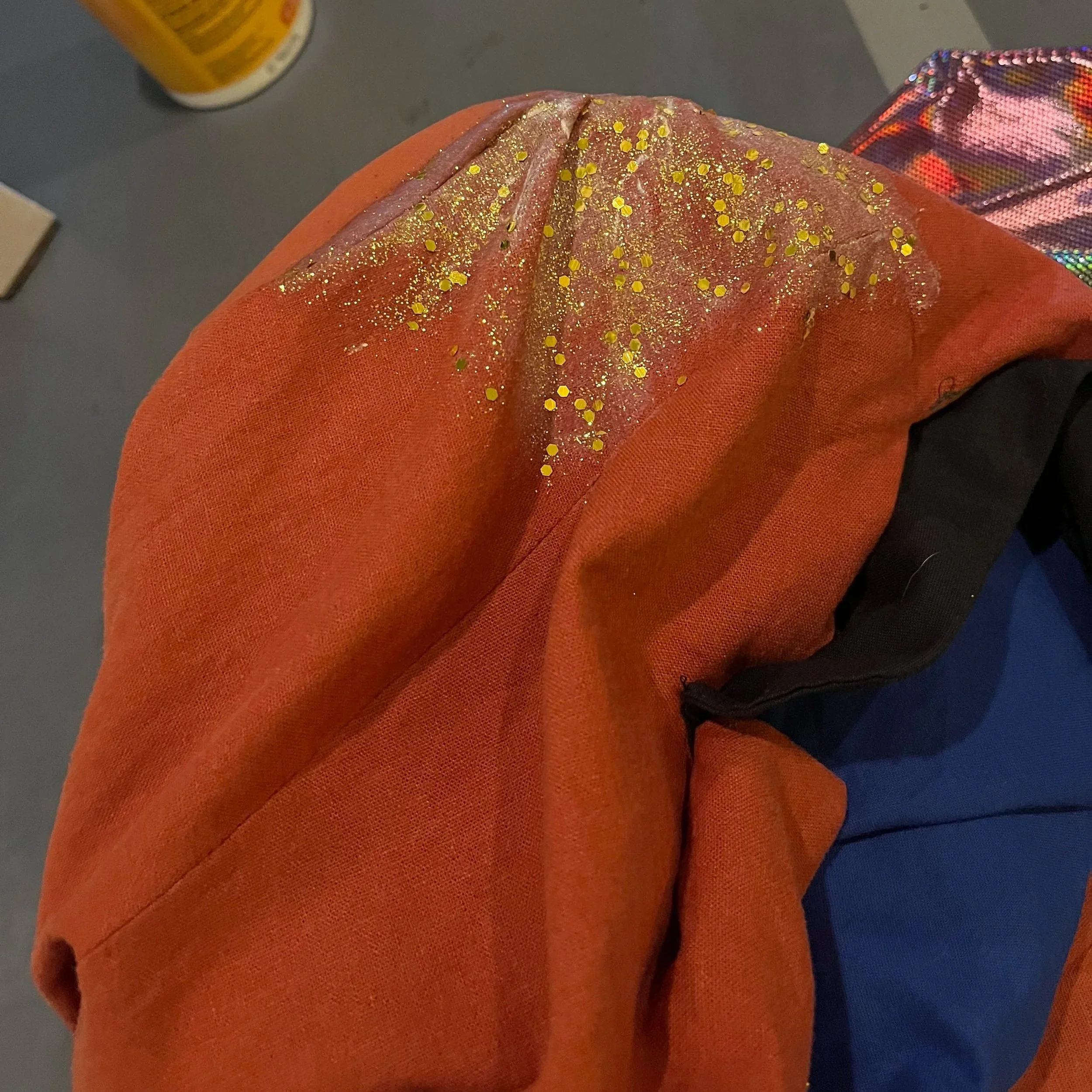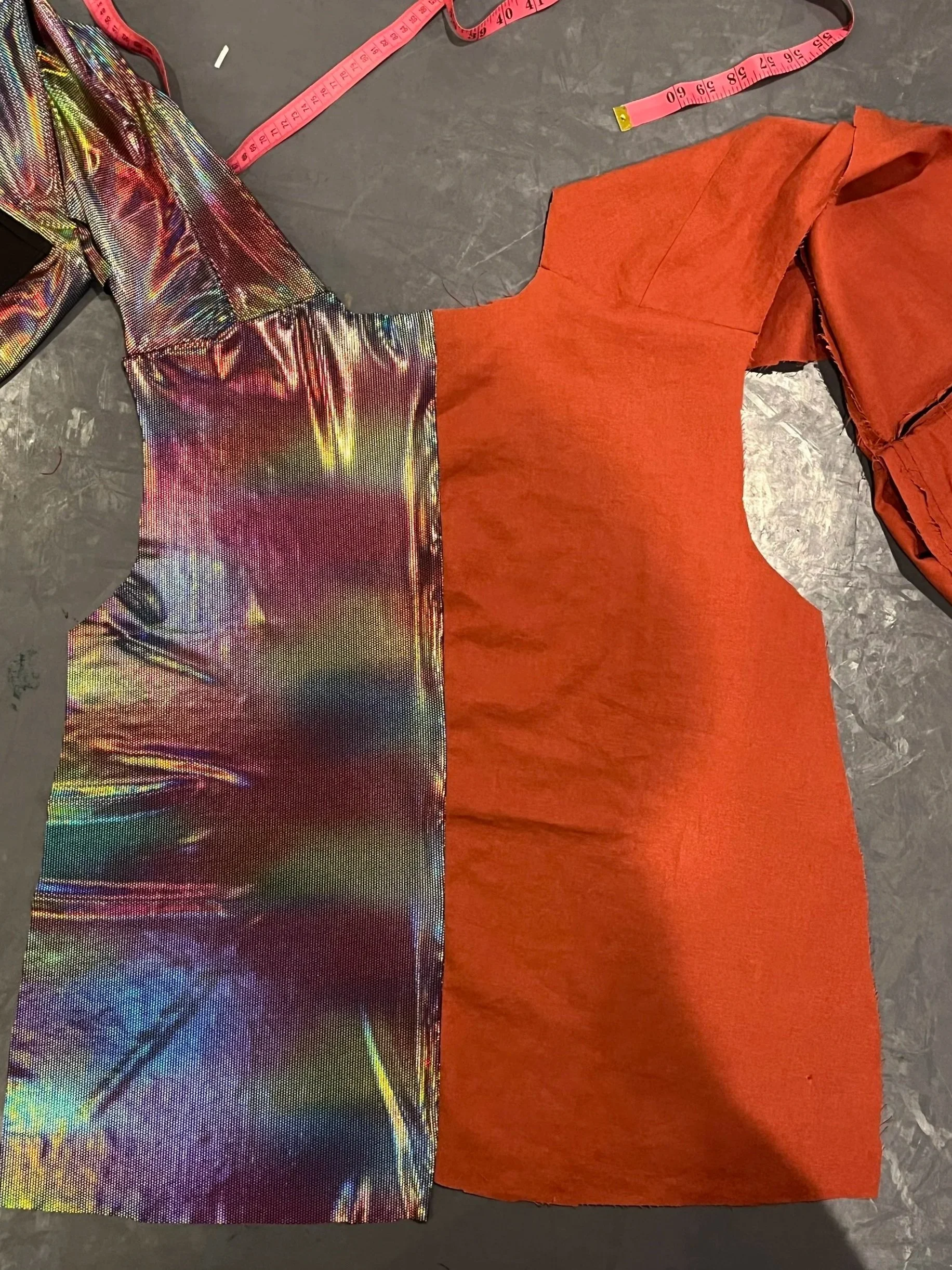 I was immediately interested in taking on this project because of the wacky and colorful overall design. I had a lot of fun sewing the blazer and making it unique with holographic fabric, glitter, and LED lights.